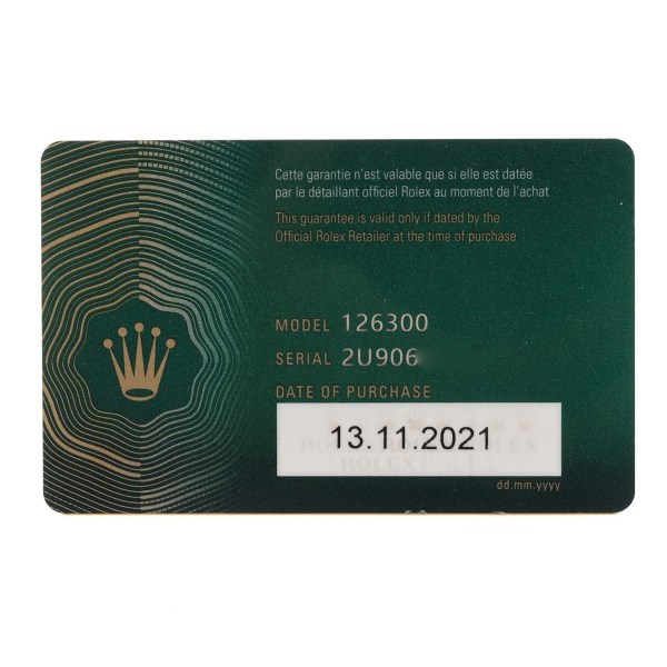 | Box & Papers: | Rolex box and card. |