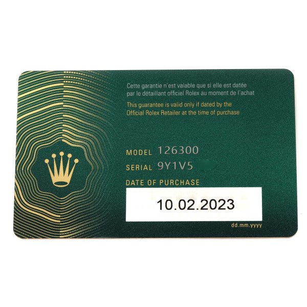 | Box & Papers: | Rolex box and card. |