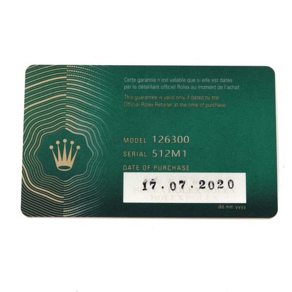 | Box & Papers: | Rolex box and card. |