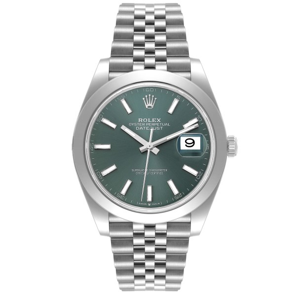 | Model Name: | Rolex Datejust 41 Mint Green Dial Smooth Bezel Steel Mens Watch 126300 Box Card |