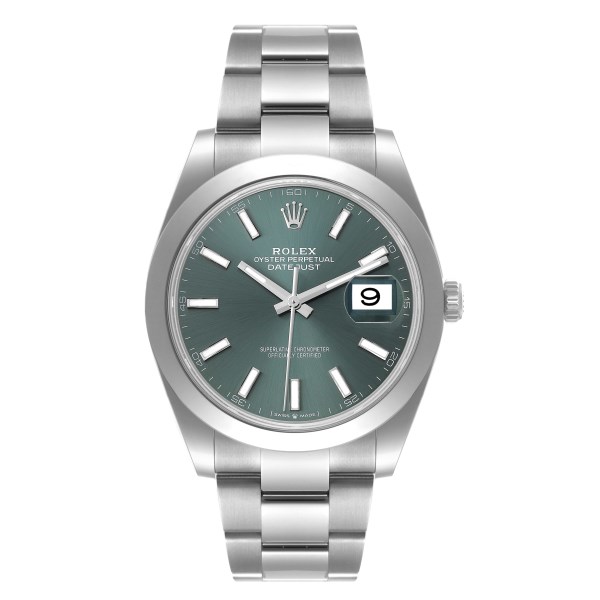 | Model Name: | Rolex Datejust 41 Mint Green Dial Smooth Bezel Steel Mens Watch 126300 Unworn |