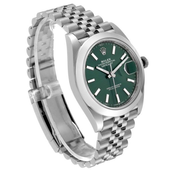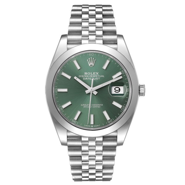 | Model Name: | Rolex Datejust 41 Mint Green Dial Smooth Bezel Steel Mens Watch 126300 Unworn |