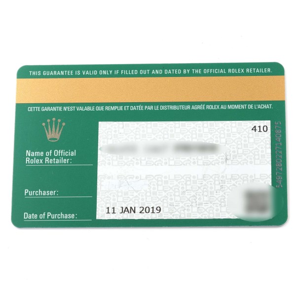 | Box & Papers: | Rolex box and card. |