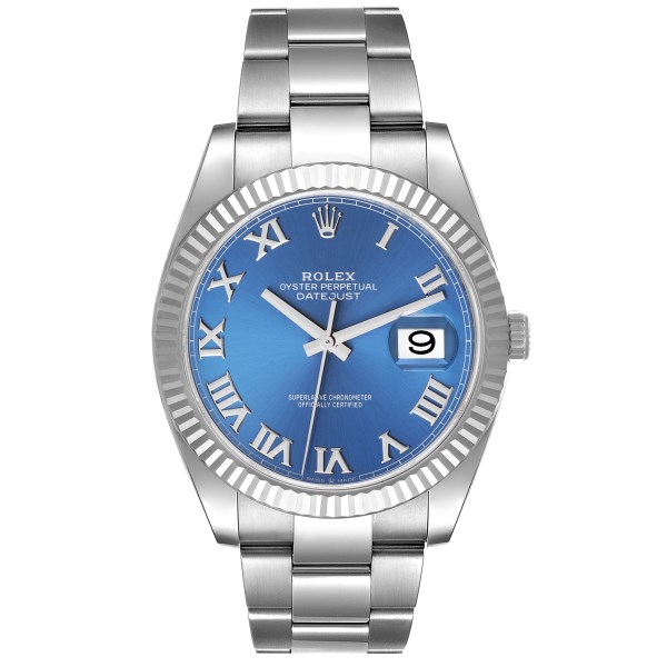 | Model Name: | Rolex Datejust 41 Steel White Gold Blue Roman Dial Mens Watch 126334 Box Card |