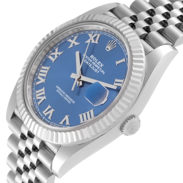 | Model Name: | Rolex Datejust 41 Steel White Gold Blue Roman Dial Mens Watch 126334 Box Card |