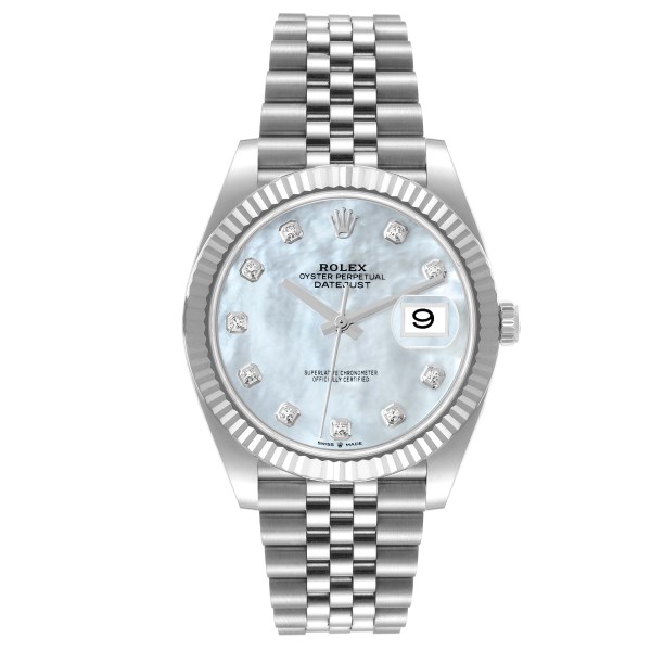 | Model Name: | Rolex Datejust 41 Steel White Gold Mother of Pearl Diamond Mens Watch 126334 Unworn |