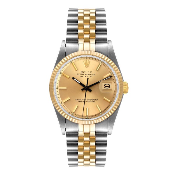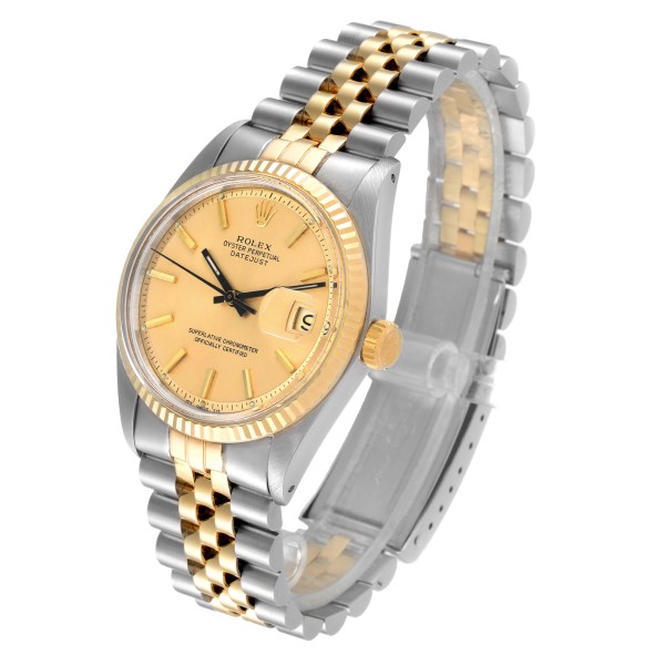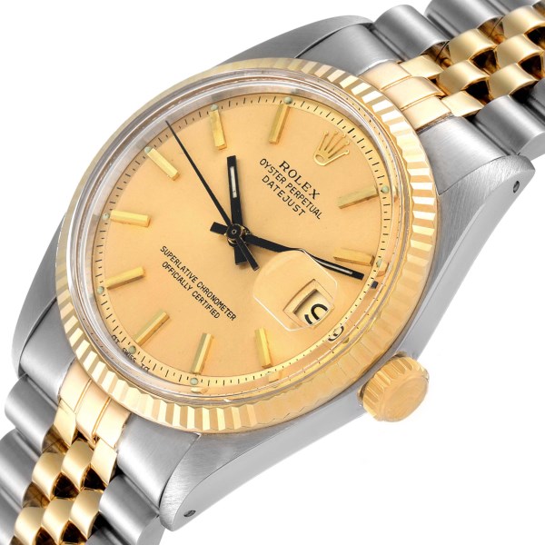 | Model Name: | Rolex Datejust Champagne Dial Steel Yellow Gold Vintage Mens Watch 1601 |