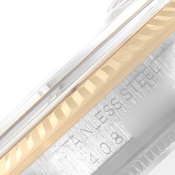 | Bracelet: | Stainless steel and yellow gold jubilee bracelet with fold over clasp. Fits 7 3/4" wrist' |