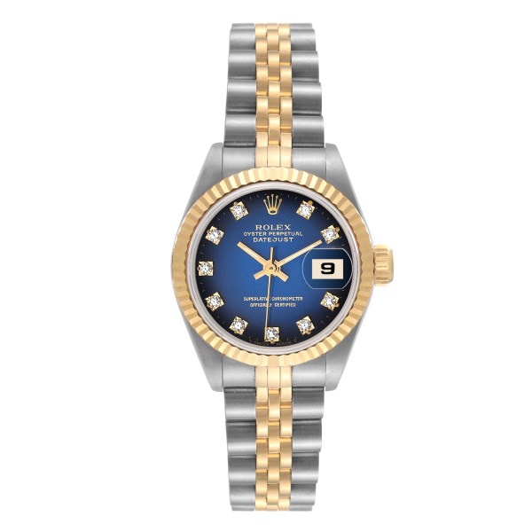| Dial: | Blue vignette dial with original Rolex factory diamond hour markers. Date calendar at 3 o'clock aperture. |