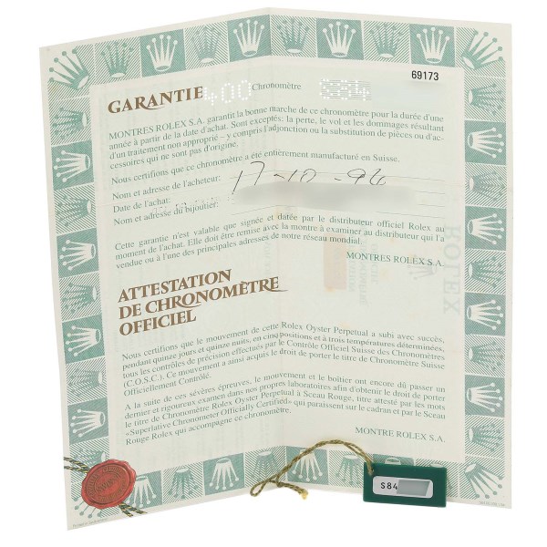 | Box & Papers: | Rolex box and papers. |