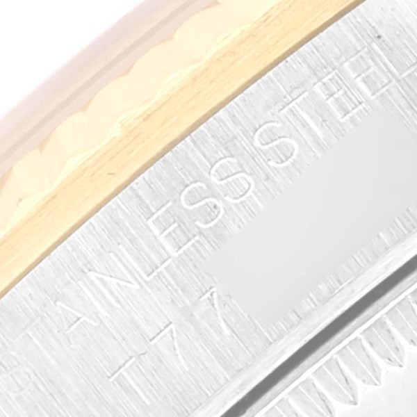 | Bracelet: | Stainless steel and 18k yellow gold jubilee bracelet with fold over clasp. Fits 7 1/4" wrist. |
