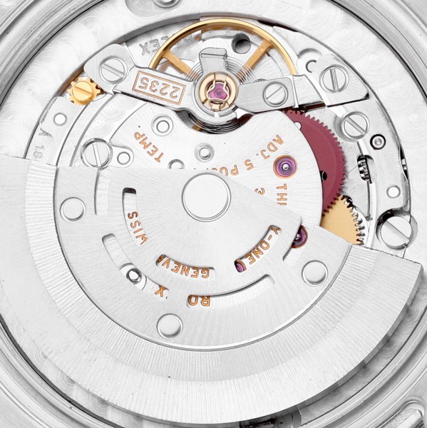 | Dial: | Blue jubilee anniversary dial with original Rolex factory diamond hour markers. Date calendar at 3 o'clock aperture. |