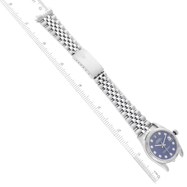 | Dial: | Blue dial with original Rolex factory diamond hour markers. Date calendar at 3 o'clock aperture. |