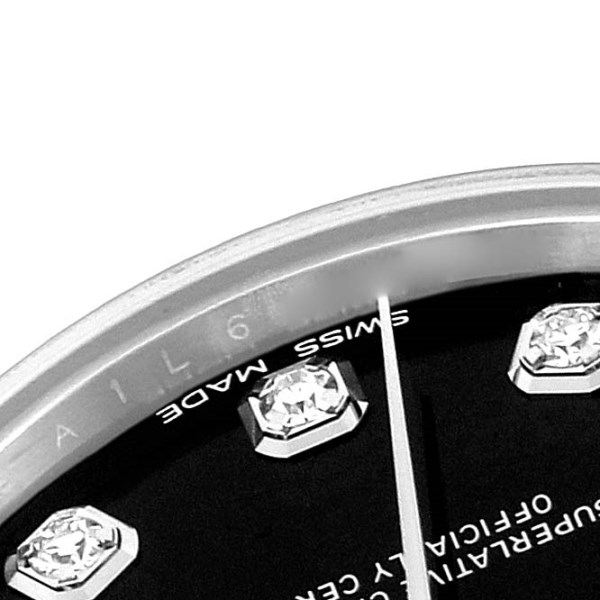 | Dial: | Black dial with original Rolex factory diamond hour markers. Date calendar at 3 o'clock aperture. |