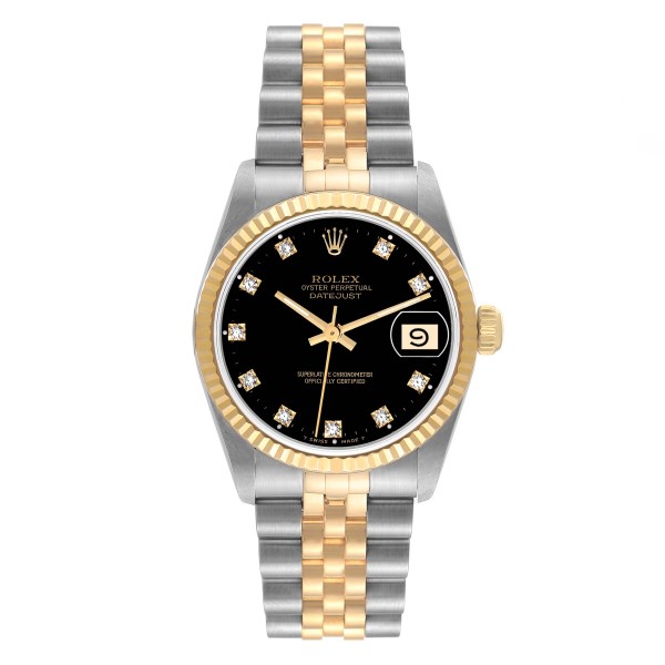 | Model Name: | Rolex Datejust Midsize Steel Yellow Gold Black Diamond Dial Ladies Watch 68273 |