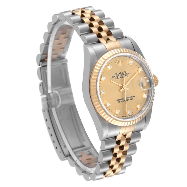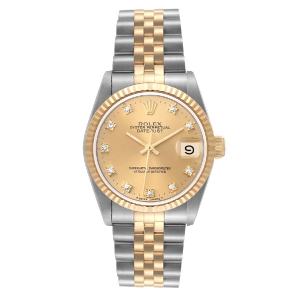 | Model Name: | Rolex Datejust Midsize Steel Yellow Gold Diamond Dial Ladies Watch 68273 |