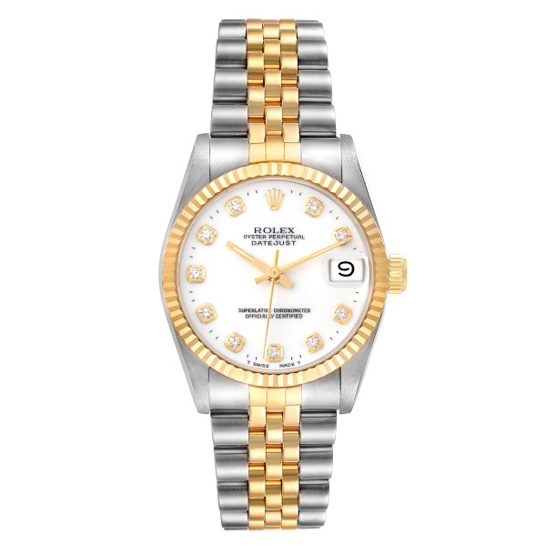 | Model Name: | Rolex Datejust Midsize Steel Yellow Gold Diamond Ladies Watch 68273 Box Papers |