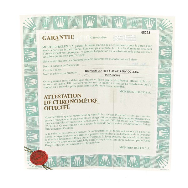 | Dial: | White dial with original Rolex factory diamond hour markers. Date calendar at 3 o'clock aperture. |
