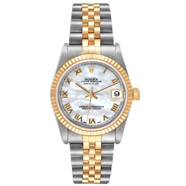 | Model Name: | Rolex Datejust Midsize Steel Yellow Gold Mother of Pearl Roman Dial Ladies Watch 78273 |