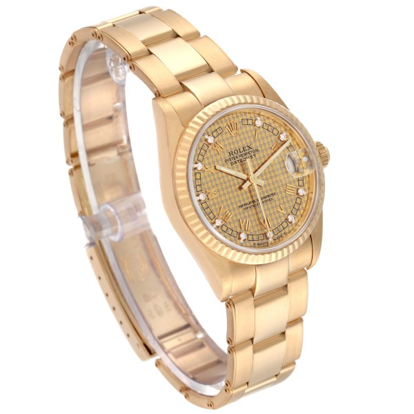 | Model Name: | Rolex Datejust Midsize Yellow Gold Houndstooth Diamond Dial Ladies Watch 68278 |