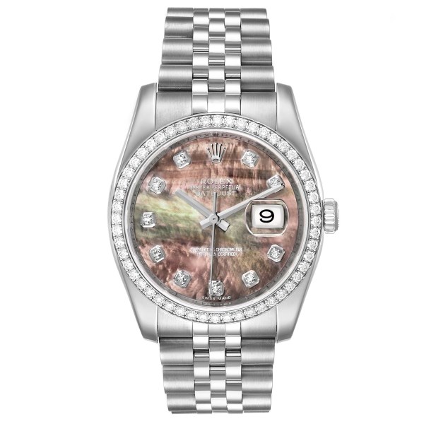 | Model Name: | Rolex Datejust Mother of Pearl Diamond Dial Bezel Mens Watch 116244 |
