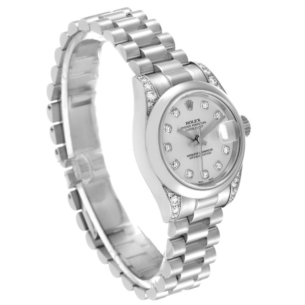 | Model Name: | Rolex Datejust President Platinum Silver Diamond Ladies Watch 179296 Box Papers |
