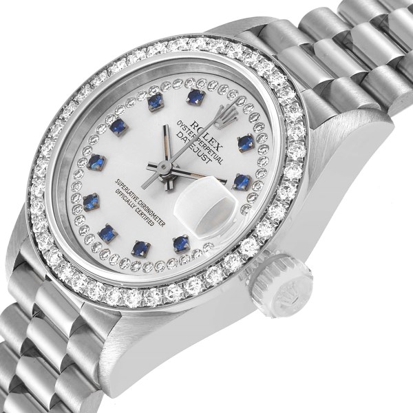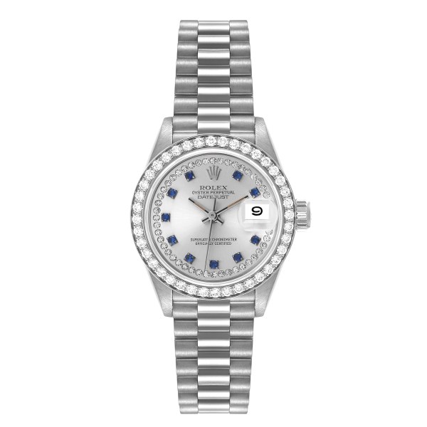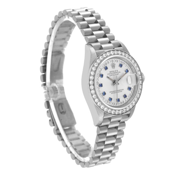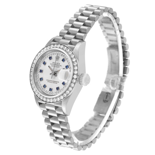 | Model Name: | Rolex Datejust President White Gold Diamond Sapphire Ladies Watch 69139 |