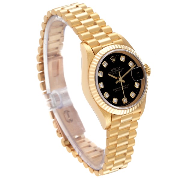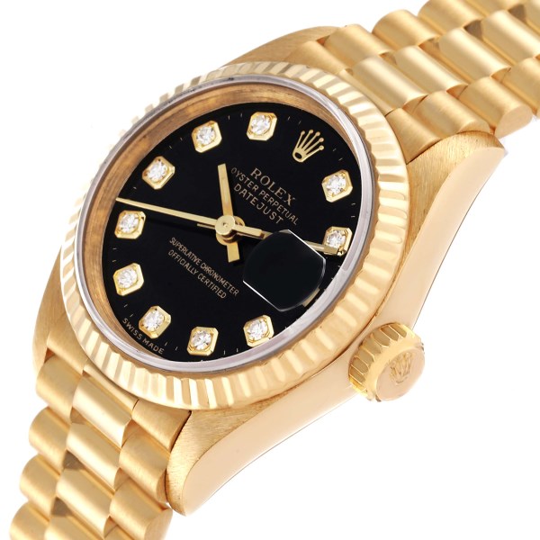 | Model Name: | Rolex Datejust President Yellow Gold Black Diamond Dial Ladies Watch 69178 |