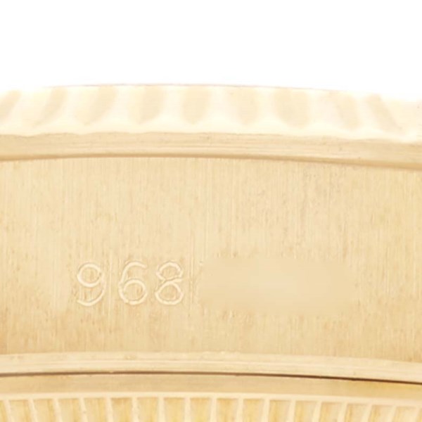 | Case: | 18k yellow gold oyster case 26.0 mm in diameter. Rolex logo on the crown. |