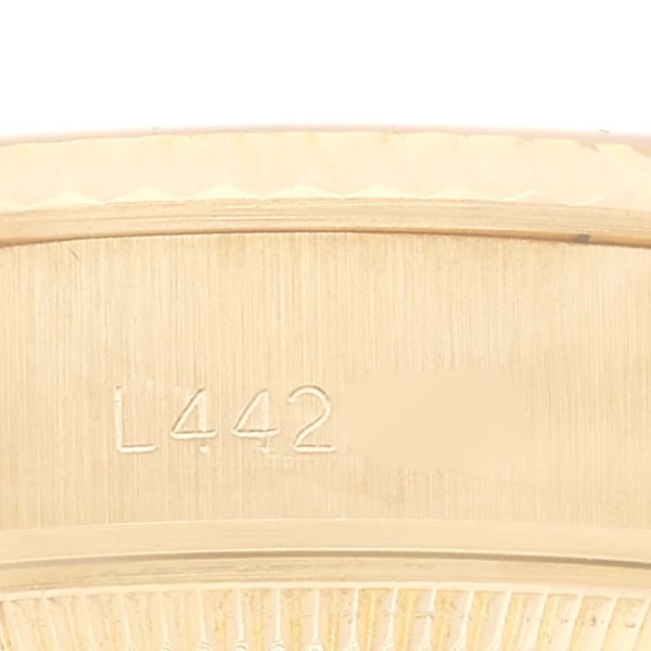 | Case: | 18k yellow gold oyster case 26.0 mm in diameter. Rolex logo on the crown. |