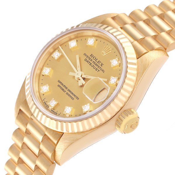 | Model Name: | Rolex Datejust President Yellow Gold Diamond Dial Ladies Watch 69178 |