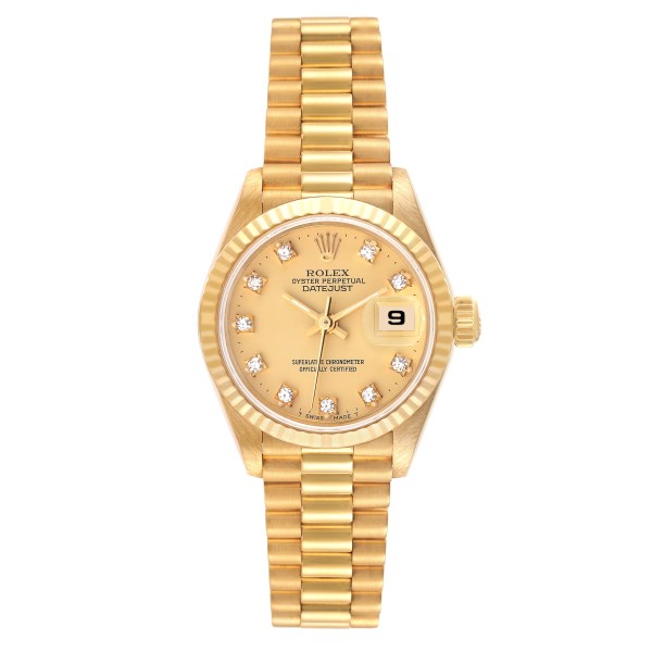 | Model Name: | Rolex Datejust President Yellow Gold Diamond Dial Ladies Watch 69178 |