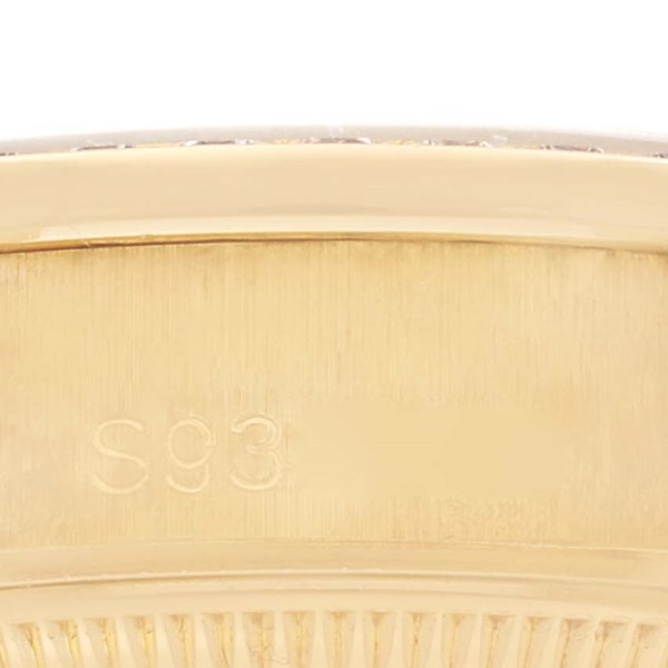 | Case: | 18k yellow gold oyster case with original Rolex factory diamond set lugs. 26.0 mm in diameter. Rolex logo on the crown. |