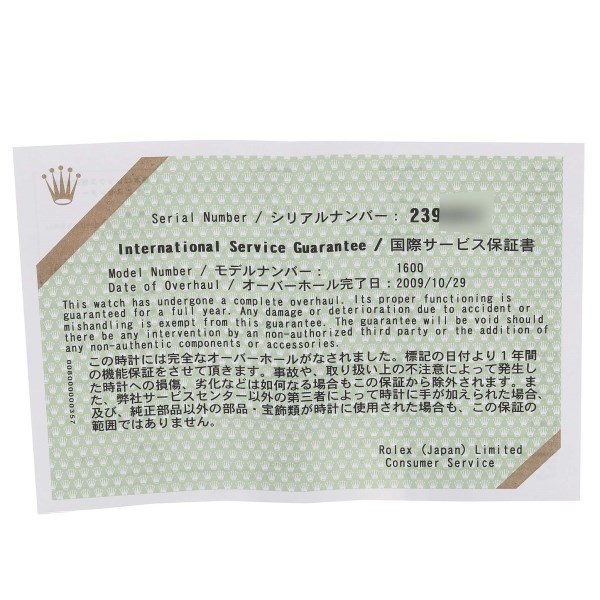 | Box & Papers: | Rolex box and service papers. |
