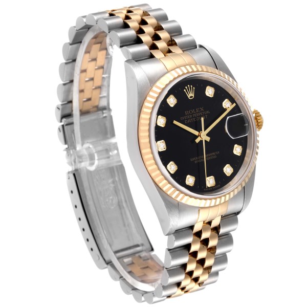 | Dial: | Black dial with original Rolex factory diamond hour markers. Date window at 3 o'clock aperture. |