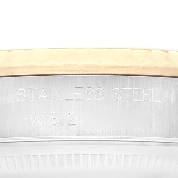 | Case: | Stainless steel case 36.0 mm in diameter. Rolex logo on an 18K yellow gold crown. |