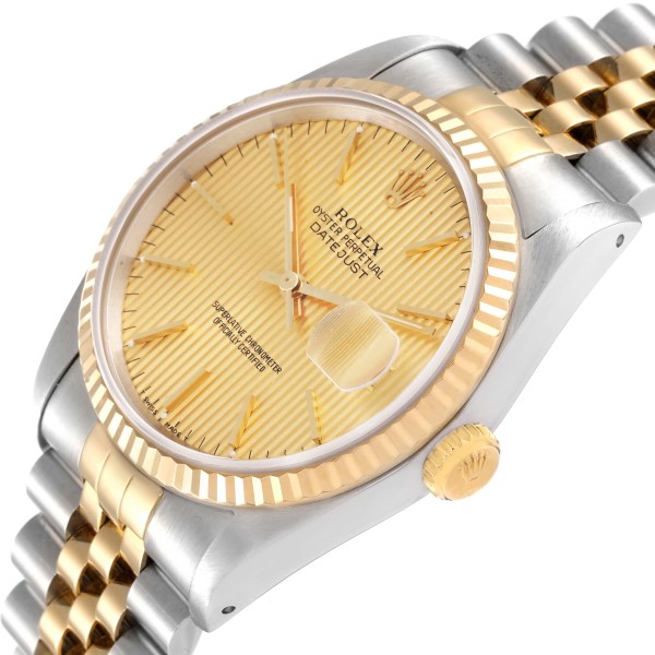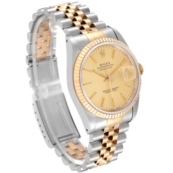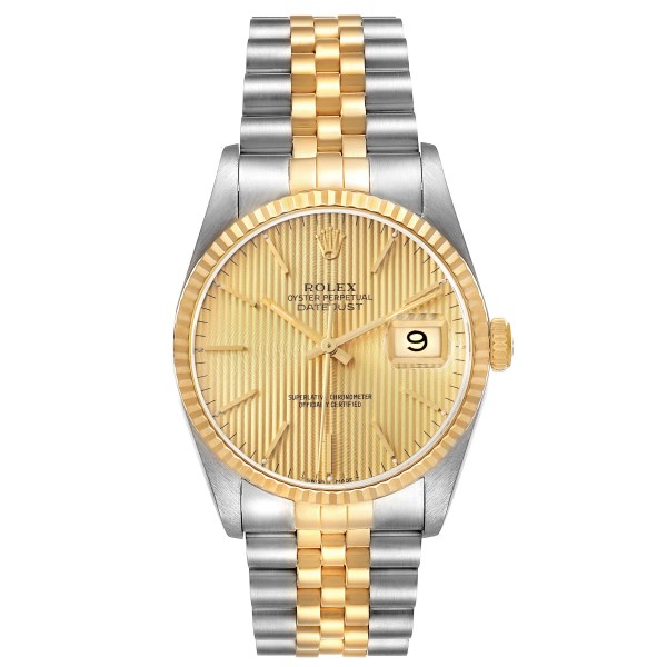 | Model Name: | Rolex Datejust Steel 18K Yellow Gold Champagne Tapestry Dial Watch 16233 |