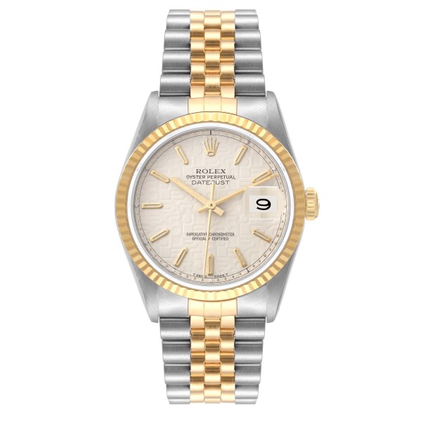 | Model Name: | Rolex Datejust Steel 18K Yellow Gold Ivory Anniversary Dial Mens Watch 16233 |
