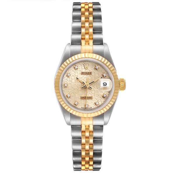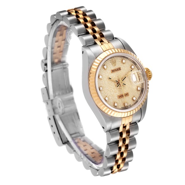 | Model Name: | Rolex Datejust Steel Gold Anniversary Diamond Dial Ladies Watch 69173 Papers |