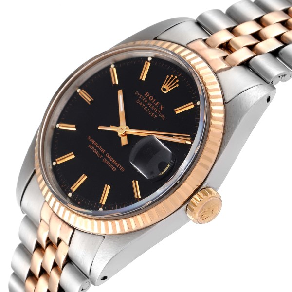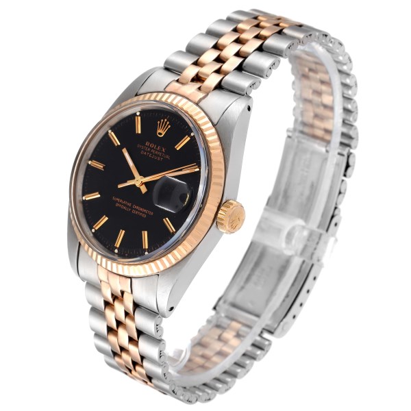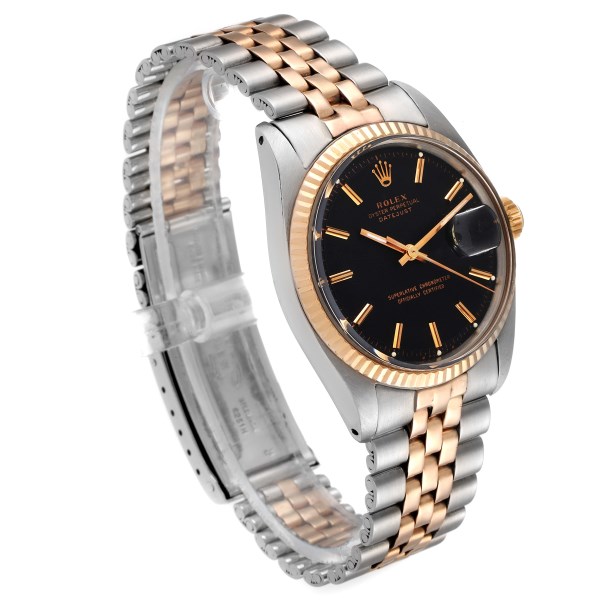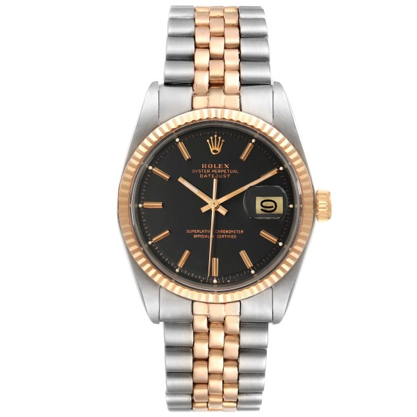 | Model Name: | Rolex Datejust Steel Rose Gold Black Pie Pan Dial Vintage Mens Watch 1601 |