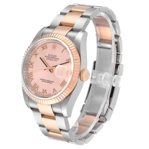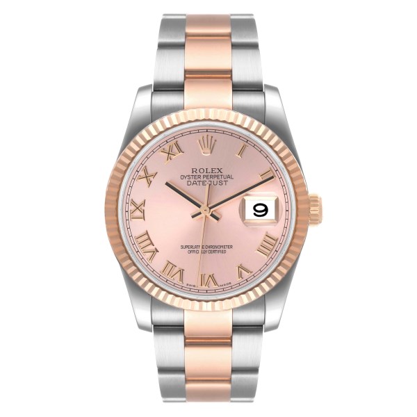 | Model Name: | Rolex Datejust Steel Rose Gold Rose Roman Dial Mens Watch 116231 |
