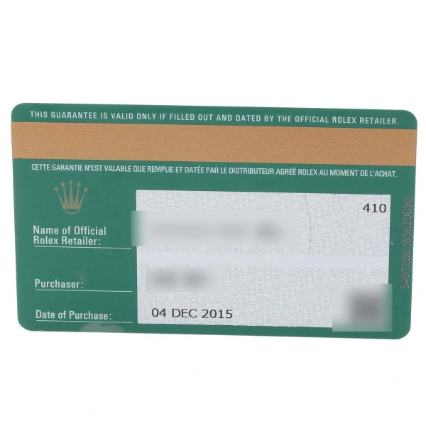 | Box & Papers: | Rolex box and card |