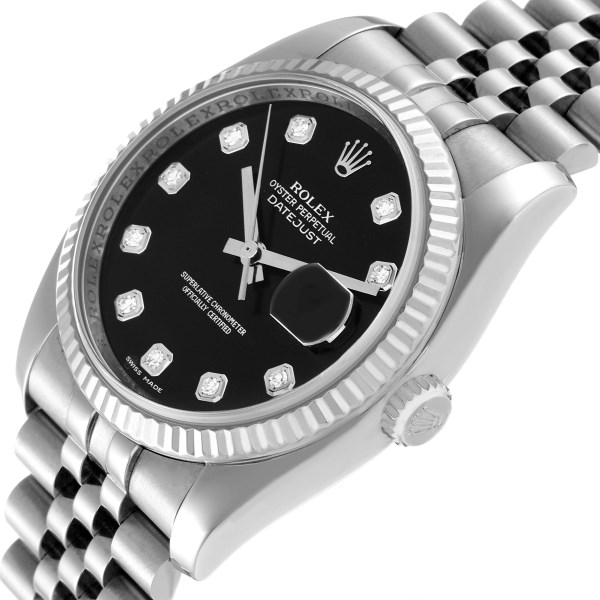 | Model Name: | Rolex Datejust Steel White Gold Black Diamond Dial Mens Watch 116234 |