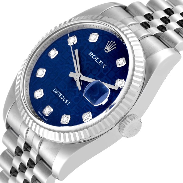| Model Name: | Rolex Datejust Steel White Gold Blue Diamond Dial Mens Watch 116234 Box Card |