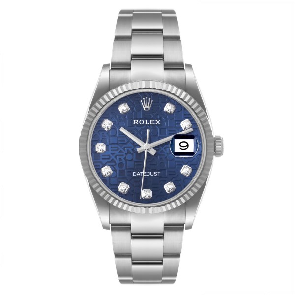 | Model Name: | Rolex Datejust Steel White Gold Blue Diamond Dial Mens Watch 126234 Unworn |