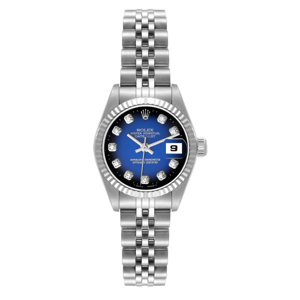 | Model Name: | Rolex Datejust Steel White Gold Blue Vignette Diamond Dial Ladies Watch 79174 |