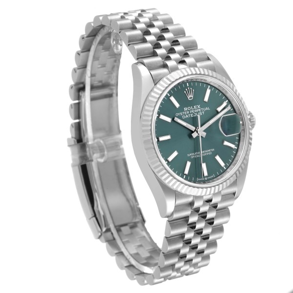 | Model Name: | Rolex Datejust Steel White Gold Mint Green Dial Mens Watch 126234 Unworn |