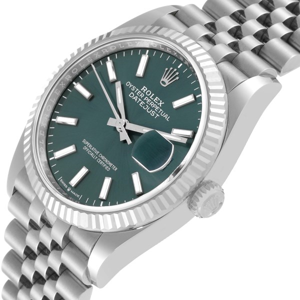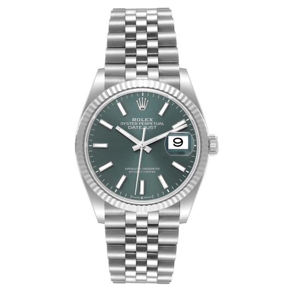 | Model Name: | Rolex Datejust Steel White Gold Mint Green Dial Mens Watch 126234 Unworn |