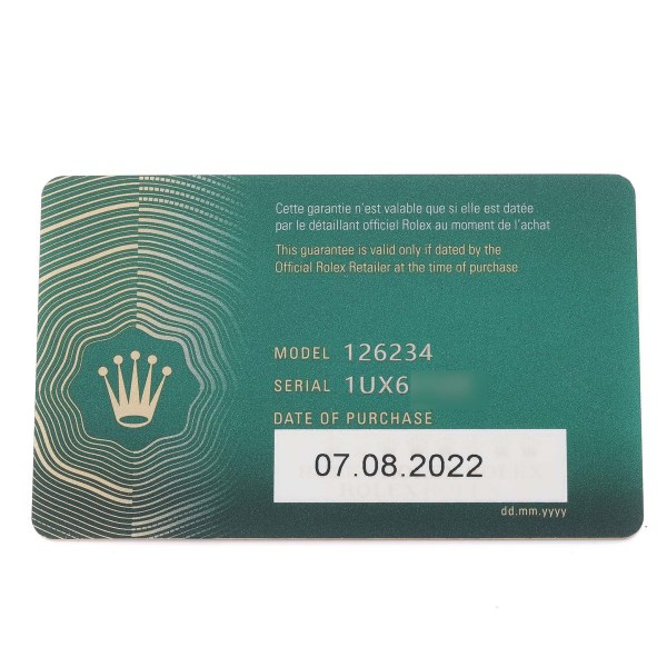 | Box & Papers: | Rolex box and card |