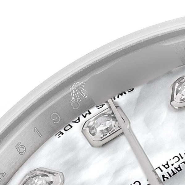 | Dial: | Mother of pearl dial with original Rolex factory diamond hour markers. Date calendar at 3 o'clock aperture. |